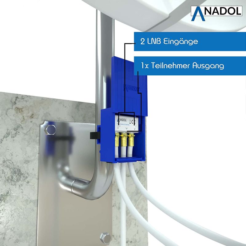 Anadol 2/1 Gold Line DiSEqC Schalter 2.0 mit Wetterschutzgehäuse + 3x F-Stecker + Kabelbinder + Dübel Schrauben