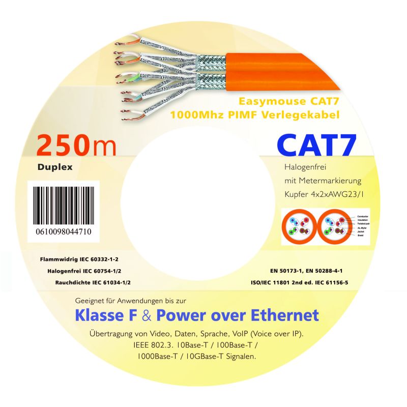 Easymouse CAT7 Gigabit Netzwerk - Verlegekabel S/FTP 1000Mhz PIMF 250m Duplex in Holzspule